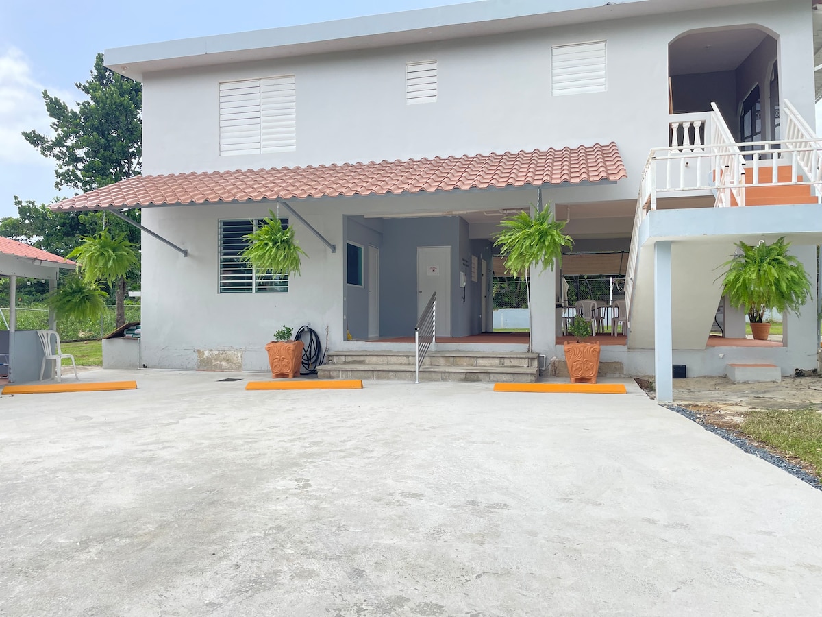 The whole group will enjoy easy access to everything from this centrally located home. You will be delighted with this charming home decorated with unique Puertican artwork throughout. Outdoor shower, fully equipped kitchen with a built in bar! A hot tea station right outside the bedrooms. Beautiful private yard w/ plenty of outdoor seating awaits you. Enjoy the convenience of being within 1 km to major shopping mall, 6 mins to beaches, 18 mins Rain Forest, Dining, San Juan & waterfalls!