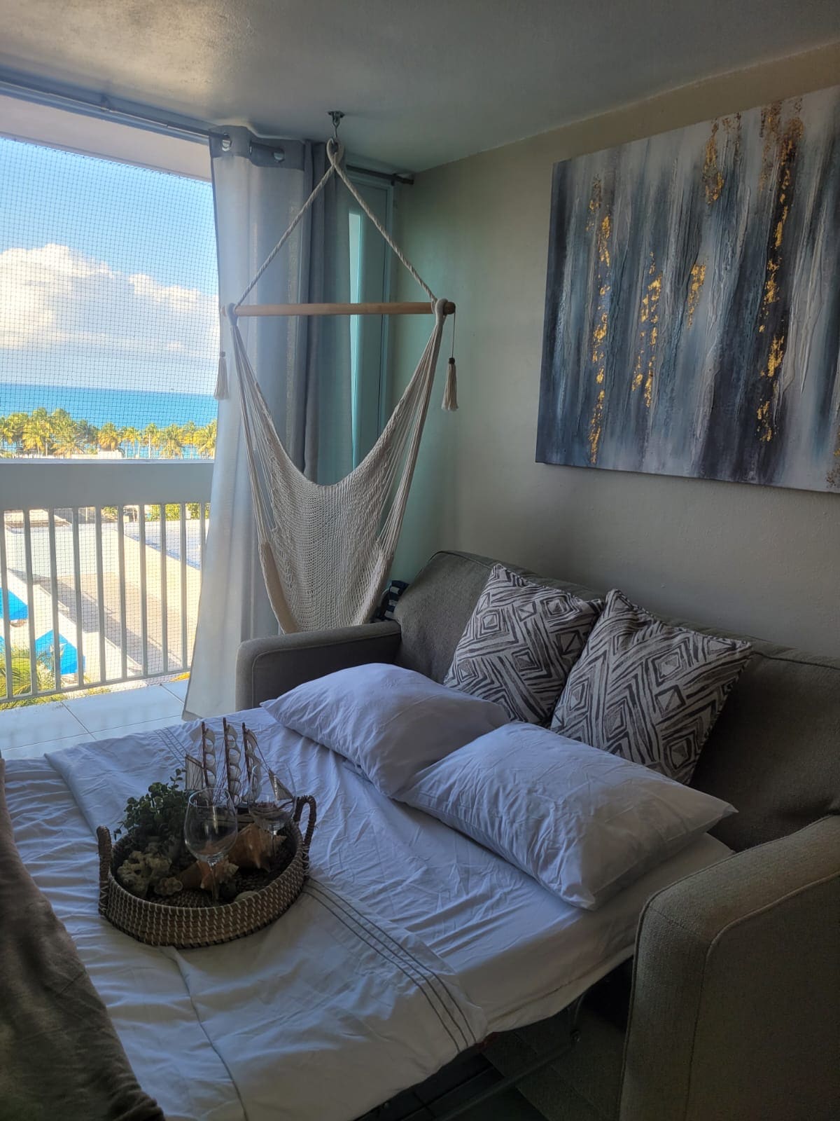 The View Gallery Studio is a Luxurious Studio Apartment located in the heart of San Juan. It is in the Miramar district. The View is incredible, you can see the sun rising from el Yunque to the East, if you look North you can see the Condado Lagoon all the way over to the San Juan Bay Marina. It is close to everything, if you have a car your in Old San Juan and Condado in 5 minutes, to the malls in 10, you could walk 5 minutes and you have multiple options of restaurants, bars, and art district.