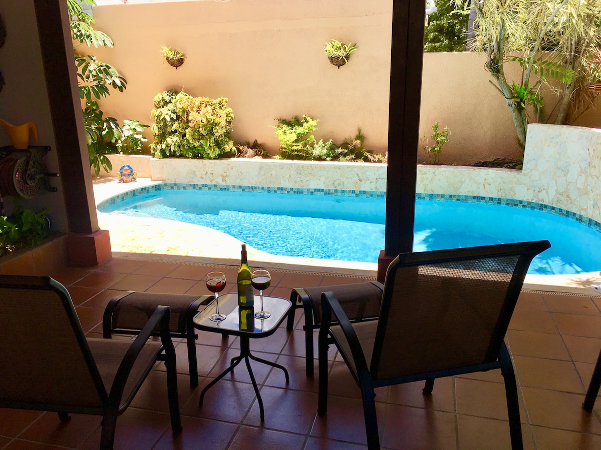 美丽的房源和私人泳池,步行9分钟即可抵达海滩