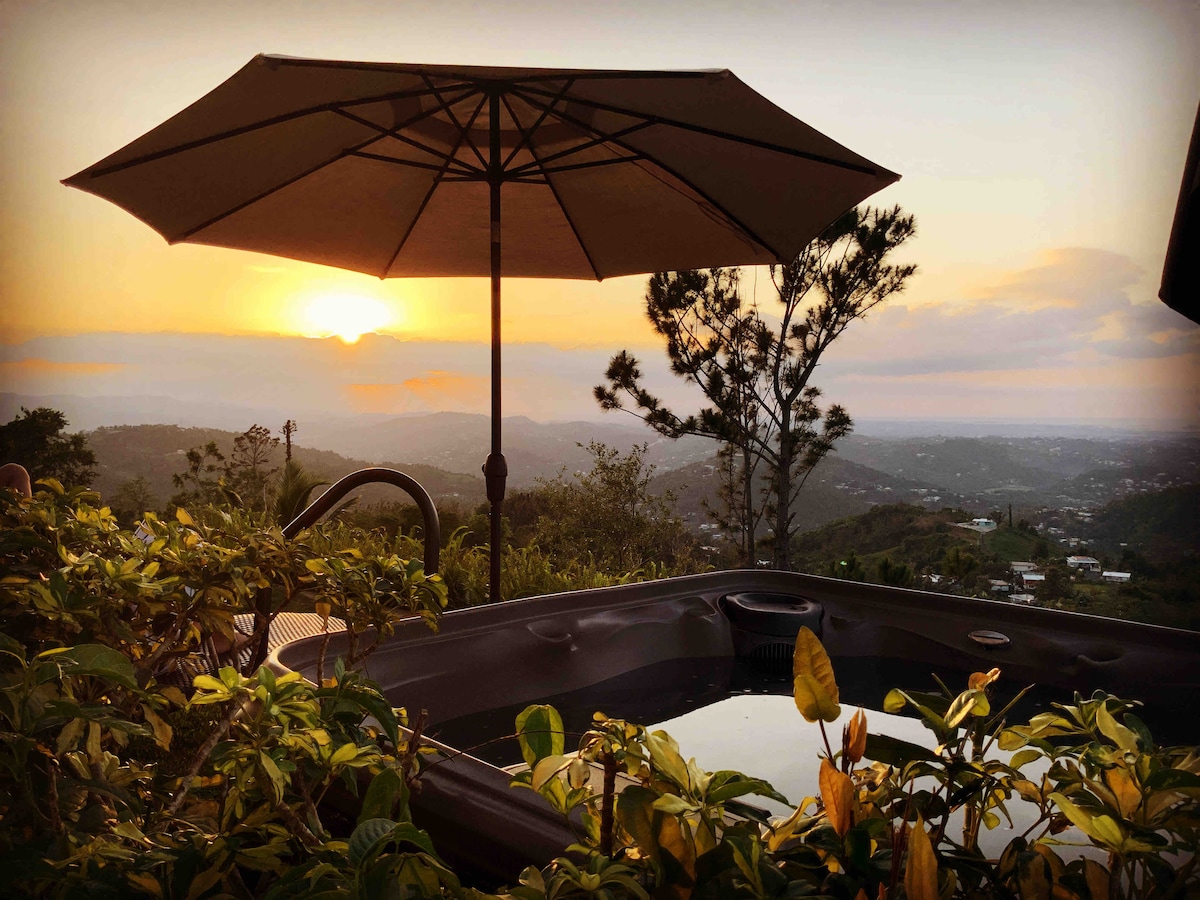 Relaxing country home with big skies and cozy beds. Looking for an intimate hideaway where you can do nothing absolutely but relax, rebalance and replenish yourself. Just 30 min from SJU airport. Enjoy our jacuzzi with hydrotherapy massage while looking at our stunning mountain, city and ocean views. This house was designed to be home away from home. Perfect for events and small weddings, additional fee will apply. Note - AC added March 2025 / Full Power Generator