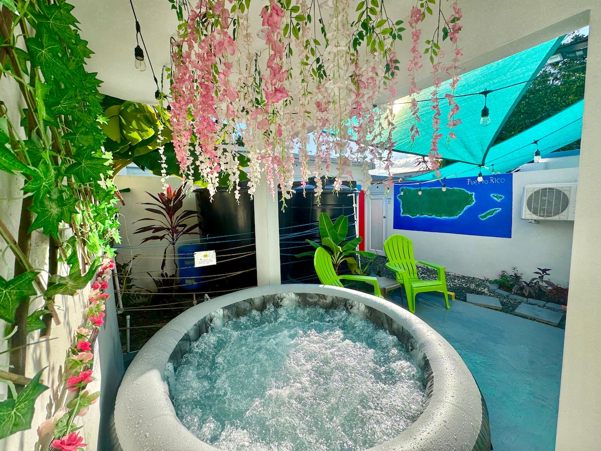 This Guest Suite, on the lower level of our exclusive luxury villa, Casa Encanto, is the perfect tropical getaway. Nestled in the peaceful and lush foothills of the El Yunque Rain Forest, Located in Luquillo with many nearby attractions. You’ll have easy access to downtown Luquillo, El Yunque National Rainforest, Luquillo Beach, Caribali Adventure Park, Las Paylas, charter boat trips, snorkeling, zip lines and much more. The Guest Suite is fully solar with Tesla Batteries and backup water