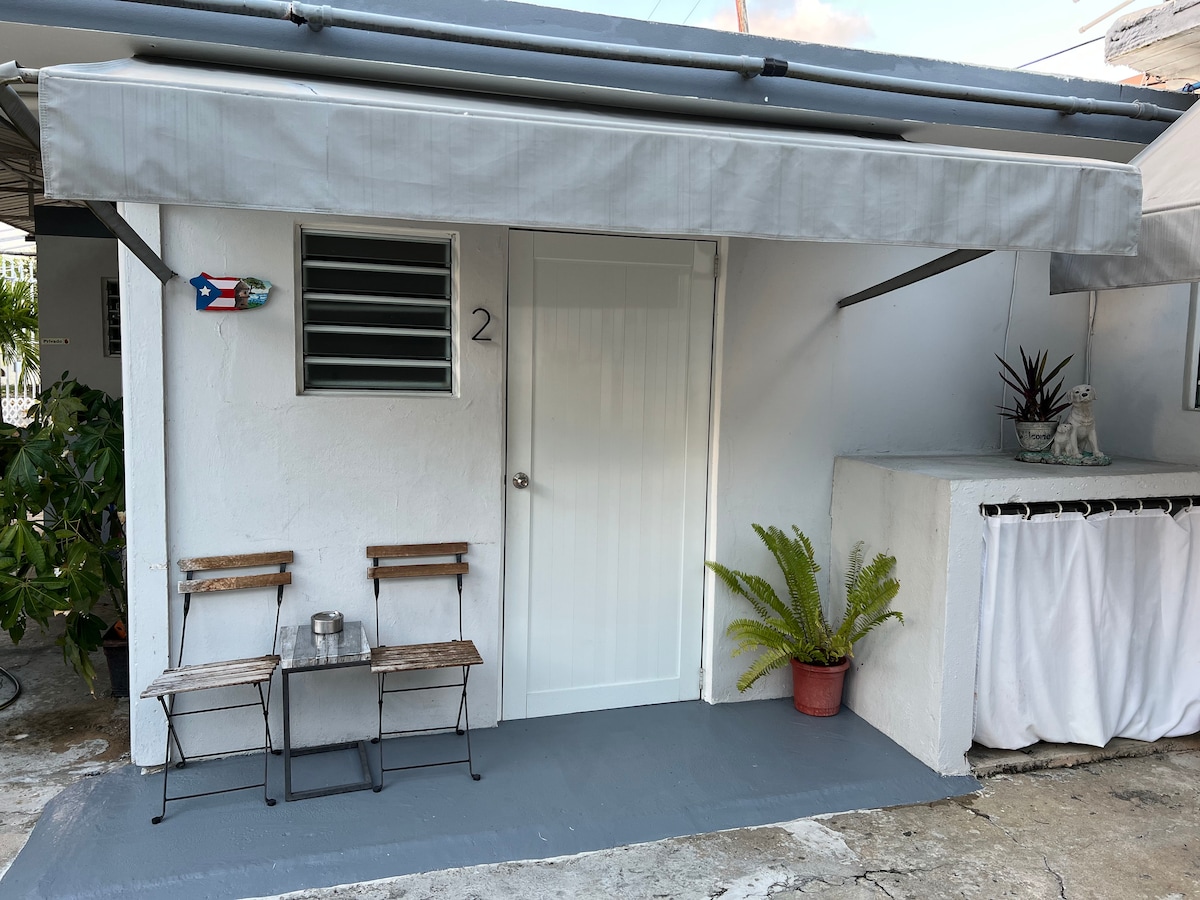 We are a Spanish Style Villa with private units in a local neighborhood. We are walking distance to the beach and the foodie district of Calle Loiza with 20+ restaurants. You will also have private kitchen and there is 24 hr. grocery store walking distance “Super Max”.We are very close 10 min Uber ride , to Old San Juan Historic city.