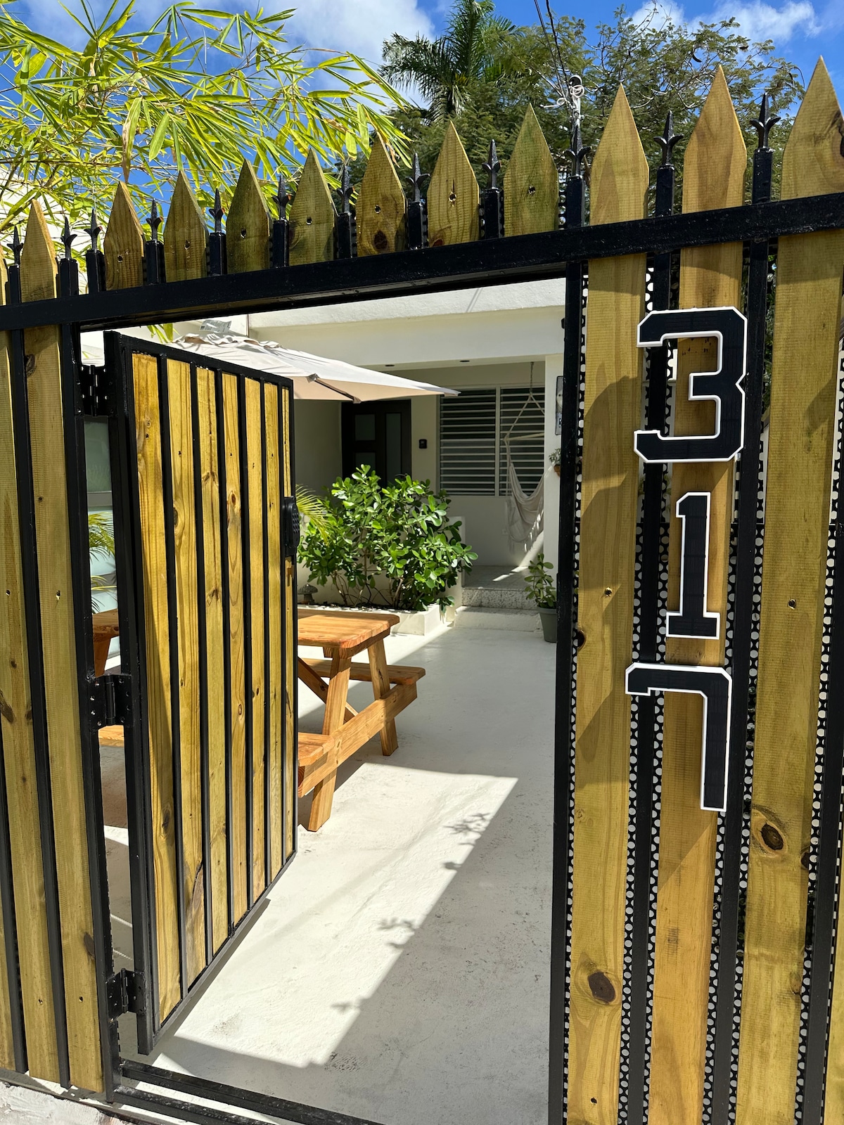 Stay in the heart of Santurce at Unit 1, a modern 3BR/2BA first-floor retreat with a full kitchen, private terrace, and designated parking. Enjoy direct access to a lush shared patio garden with BBQ and fire pit—perfect for relaxing after exploring the city. Just 10 minutes from Condado, Old San Juan, the airport, malls, and La Placita, this stylish space offers both comfort and convenience for your Puerto Rico getaway.