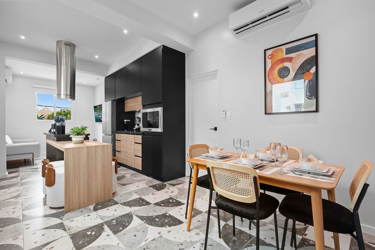 Stylish Premium Suite with balcony, located right in front of the pool with a view of the outdoor garden. Designed to accommodate up to 4 guests, it features two King beds in a single space, along with 2 bathroom. The suite also offers a fully equipped kitchen (stove, refrigerator, microwave, coffee maker, toaster, and basic utensils) and dining area. A perfect choice for families or small groups seeking comfort in a modern setting right by the pool.
