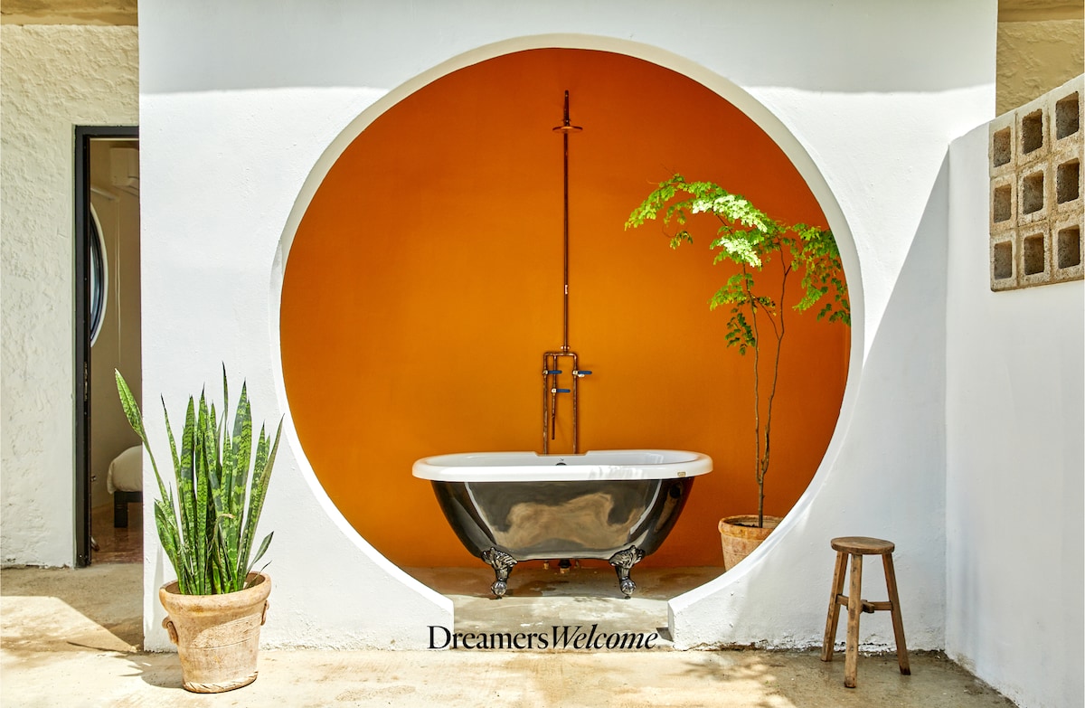 ROSA by DW This designer loft features an open kitchen, dining area, a king bed, a desk and Roku TV. The giant outdoor bathroom with it's custom designed soaking tub and rainfall shower will take your breath away! Your private outdoor area comes with a hammock and a fully roofed lounge. We offer high speed Wifi, beach chairs and self-check-in. The beach is a 7 minute walk and there are plenty of restaurants and shops, all in walking distance.