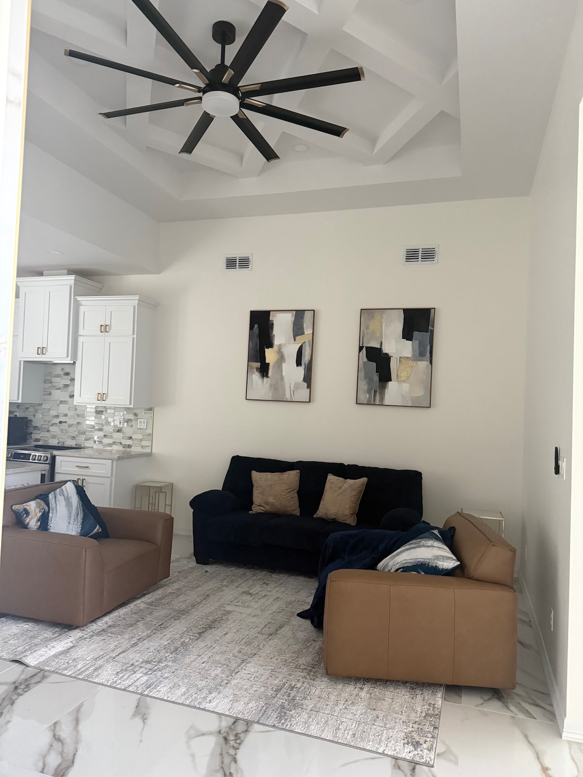 Escape to our charming home featuring a vibrant green kitchen, perfect for culinary adventures. The open layout creates a warm atmosphere, ideal for relaxation. Step outside to our inviting outdoor space, complete with a movie area for unforgettable nights under the stars. Enjoy comfortable seating and a large screen for your favorite films. Located 2 mins away from the Basilica de San Juan, you can explore local culture and history with ease.