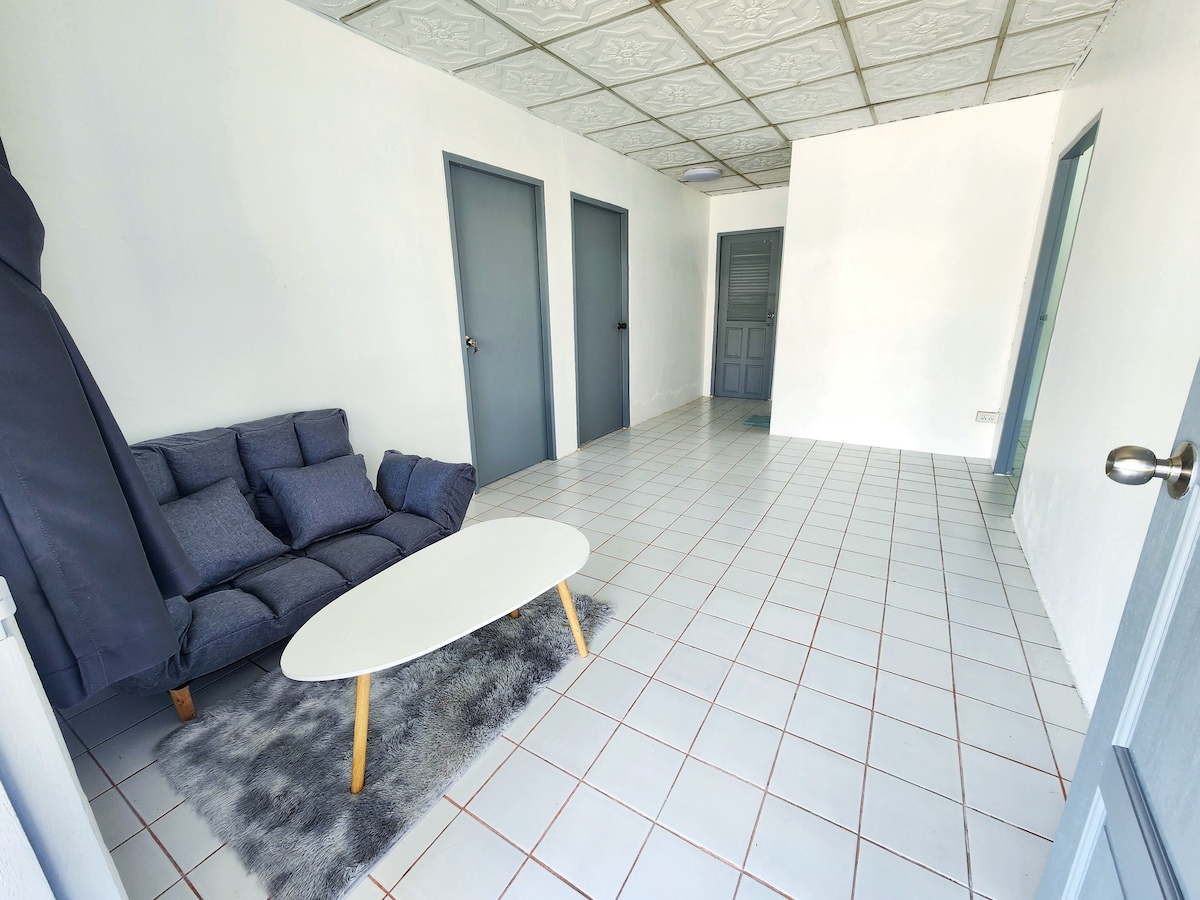 ABOUT THIS PLACE 2 Large Bedrooms Comfortable beds with air conditioning 2 Bathrooms Equipped with water heaters and full amenities Living Room Cozy seating with a large sofa and TV • Kitchen Fully equipped kitchen with an electric stove, refrigerator, and dining table • Spacious Garden Front yard with a lawn, safe for children to play • Private Parking Accommodates several cars • Located in a peaceful and secure neighborhood • Close to 7-Eleven Just a short walk for convenient shopping