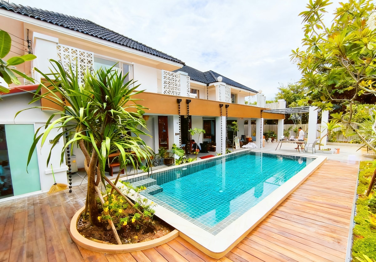 Discover Your Tranquil Retreat in Chiang Mai Nestled amidst lush teak trees, our guesthouse villa offers a serene escape from the city's hustle & bustle. Wake up to nature's sounds and panoramic pond views. Enjoy the sparkling garden pool, perfect for a refreshing dip or sun lounging. All rooms are air-conditioned for your comfort. Come and experience the perfect blend of peaceful countryside living with easy access to the cultural treasures of Chiang Mai just 20-30 minutes away.
