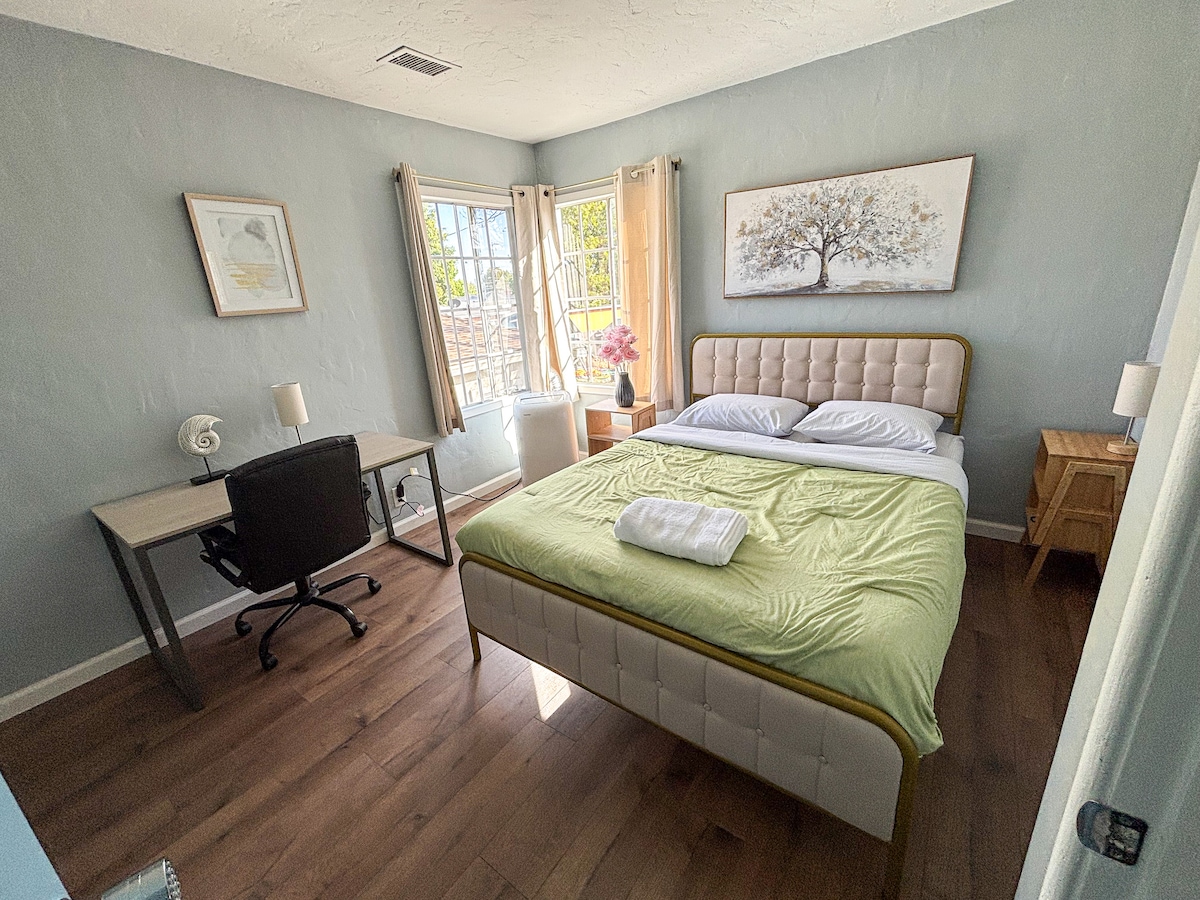 Located in the “Heart of the Bay” is our cozy & private guest suite (SUITE A). Just a 5 minute drive to downtown Hayward & BART, 20 minutes from Oakland International Airport and 35 minutes from SFO. You'll have ONE dedicated parking space on our driveway for your vehicle & SEPARATE entrance. Complimentary coffee, tea, and snacks provided. Perfect for couples or professionals coming to CA for an extended stay. Enjoy the Bay Area's beauty and excitement from your stay in the middle of it all!
