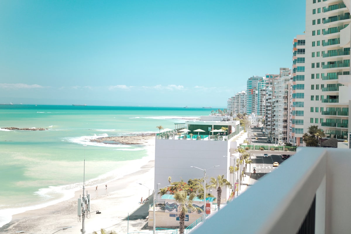 Beautiful spacious apartment in front of the beach. Wonderful ocean view. Located at Malecon Principal of Salinas, close to bars and restaurants. You can enjoy the sea with multiple activities such as swim, waverunner, boat ride, water parks and water sports. Reservations over 28 years old... PARTIES PROHIBITED