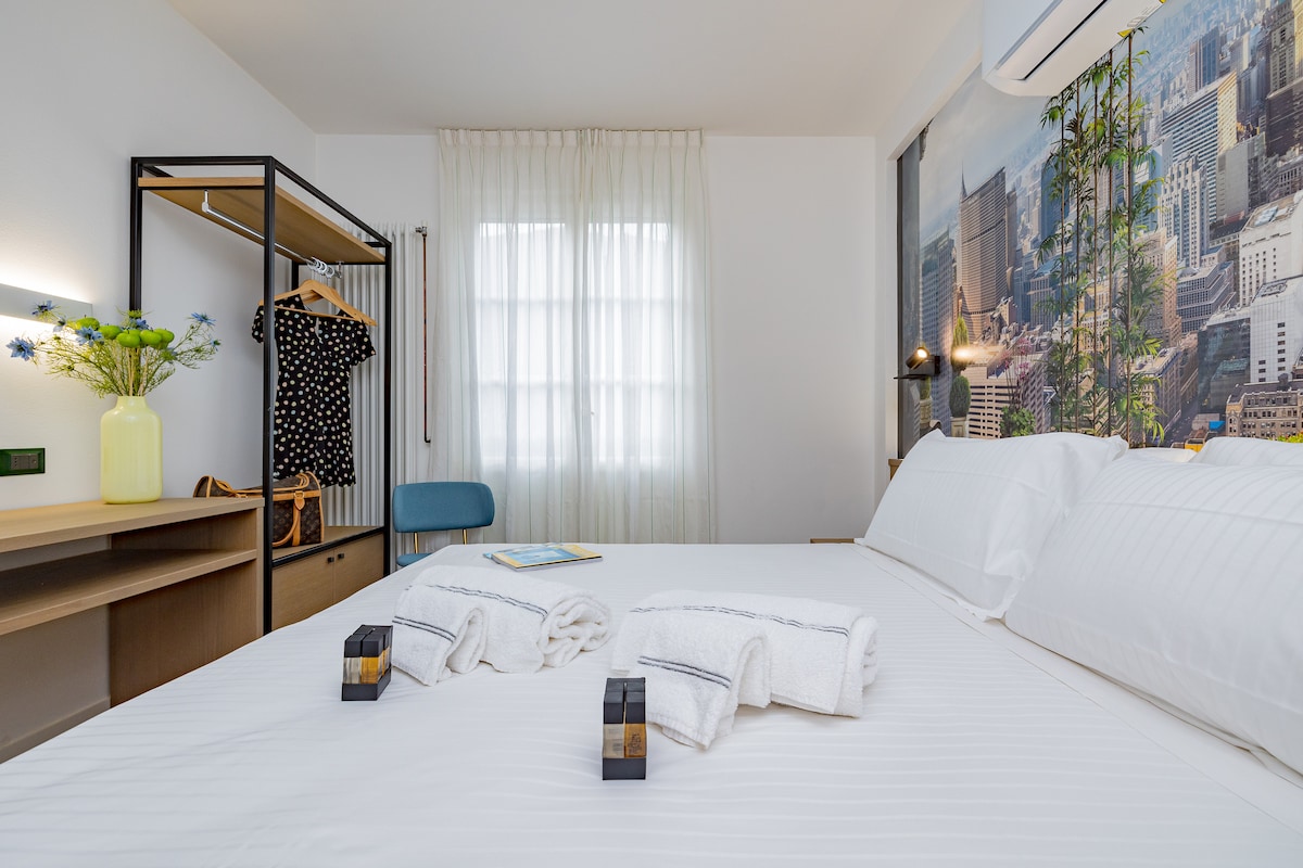 Camera Familiare. questo alloggio è pensato per ospitare fino a quattro ospiti. Famiglie, amici, coppie di amici. Su richiesta disponiamo di Culla per neonati. Gli animali domestici sono da accordare preventivamente. Parcheggi gratuiti e sorvegliati H24 nell'arco di 50/100 MT