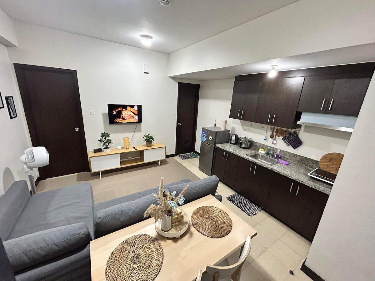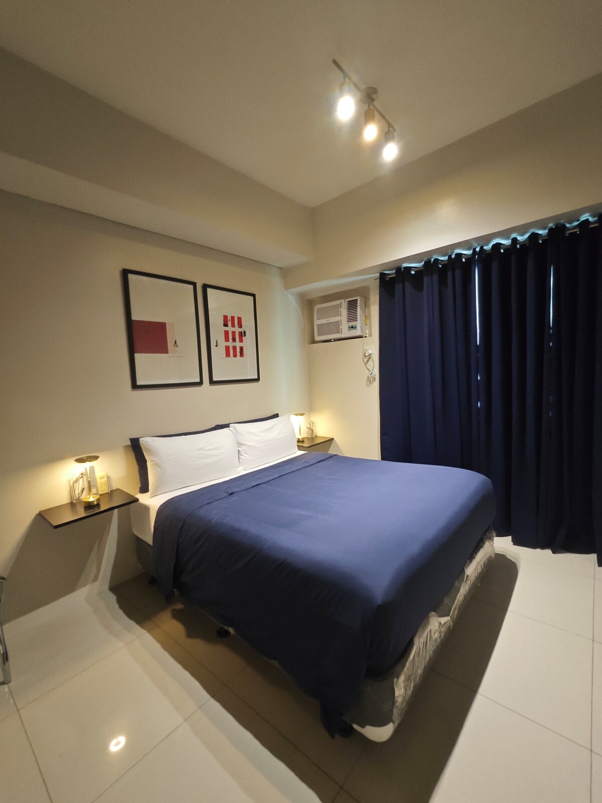 Location: 15 mins. to AIRPORT • Beside trendy BARS in the metro (Nokal, +81, Fat Cat, Big Fuzz) • Across a mall and supermarket • Convenience stores nearby Room features: 12" Queen-sized bed • blackout curtains • Netflix • 50" TV • Fast wifi • Rainshower • Kitchen • Self check-in Amenities: Pool • Roofdeck w/ glorious sunset view • Gym (with fee)