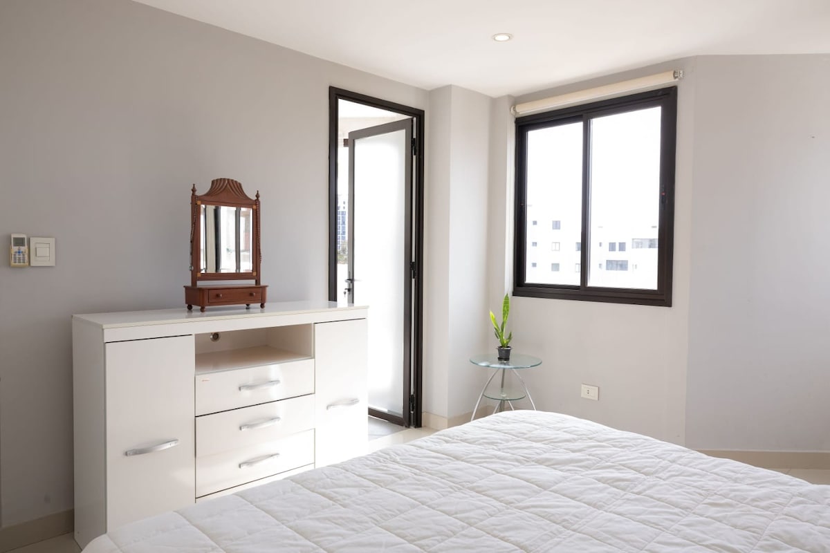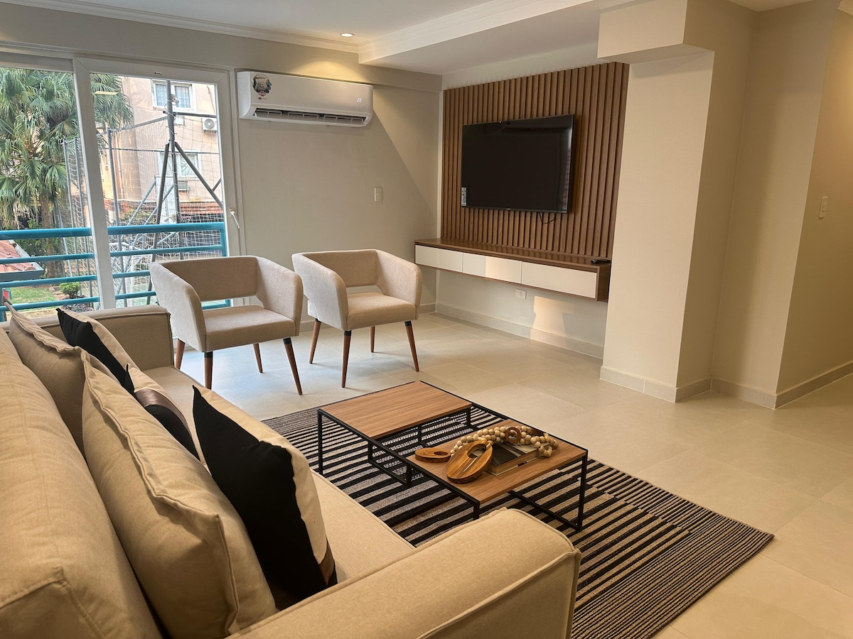 Beautiful cozy condo ready for you to enjoy your stay in Asuncion for a few days, or a few months. Everything you need is included. Short walk to Shopping Villa Morra/Mariscal, supermarket, and many restaurants. Use of roof top pool, BBQ and gym. Large balcony with great view. Wifi, linens, kitchen and everything to make yourself feel at home.
