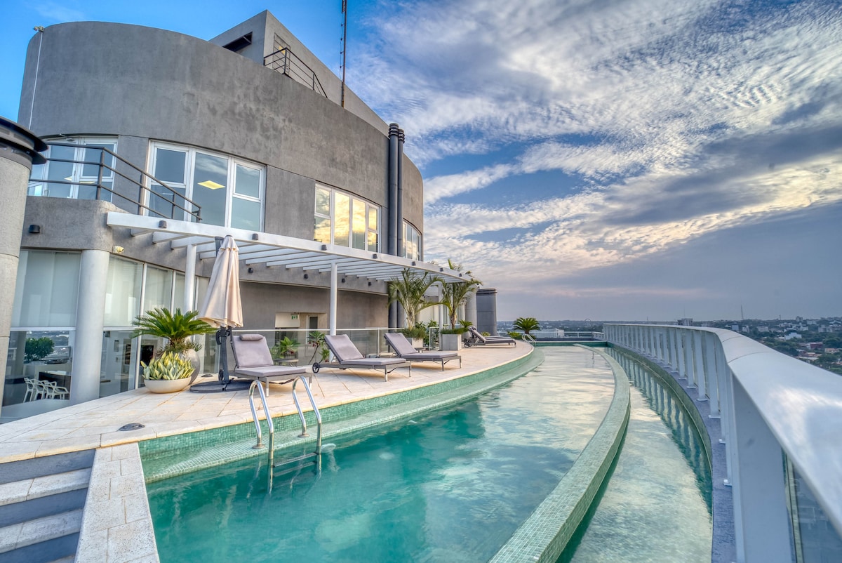 Ubicada en el corazón financiero de Asunción, esta amplia casa está a minutos de los mejores restaurantes y centros comerciales de la ciudad. Ofrece 5 baños (4 con ducha), 4 habitaciones en suite y 5 camas. Relájate en la hermosa piscina, disfruta de una parrillada en la terraza o en el quincho. La sala de estar cuenta con TV y WiFi para tu comodidad. Perfecta para familias y grupos que buscan lujo y comodidad en una ubicación privilegiada.