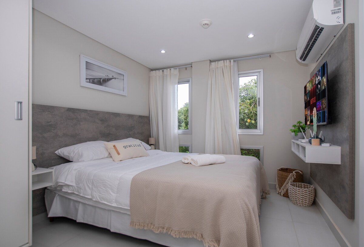 Welcome to the 5th floor of Zuba10. The apartment has been furnished with great attention to detail and offers everything you need for a comfortable stay. Fully equipped kitchen, a luxury king-size bed, a sofa bed, and a Smart TV. Thanks to fast internet and a washer-dryer, you will want for nothing. Enjoy the breathtaking view and the pool. The central location offers 24-hour security and is only 10 minutes away from Shopping del Sol and the airport. Sports in the nearby Parque NuGuazú.