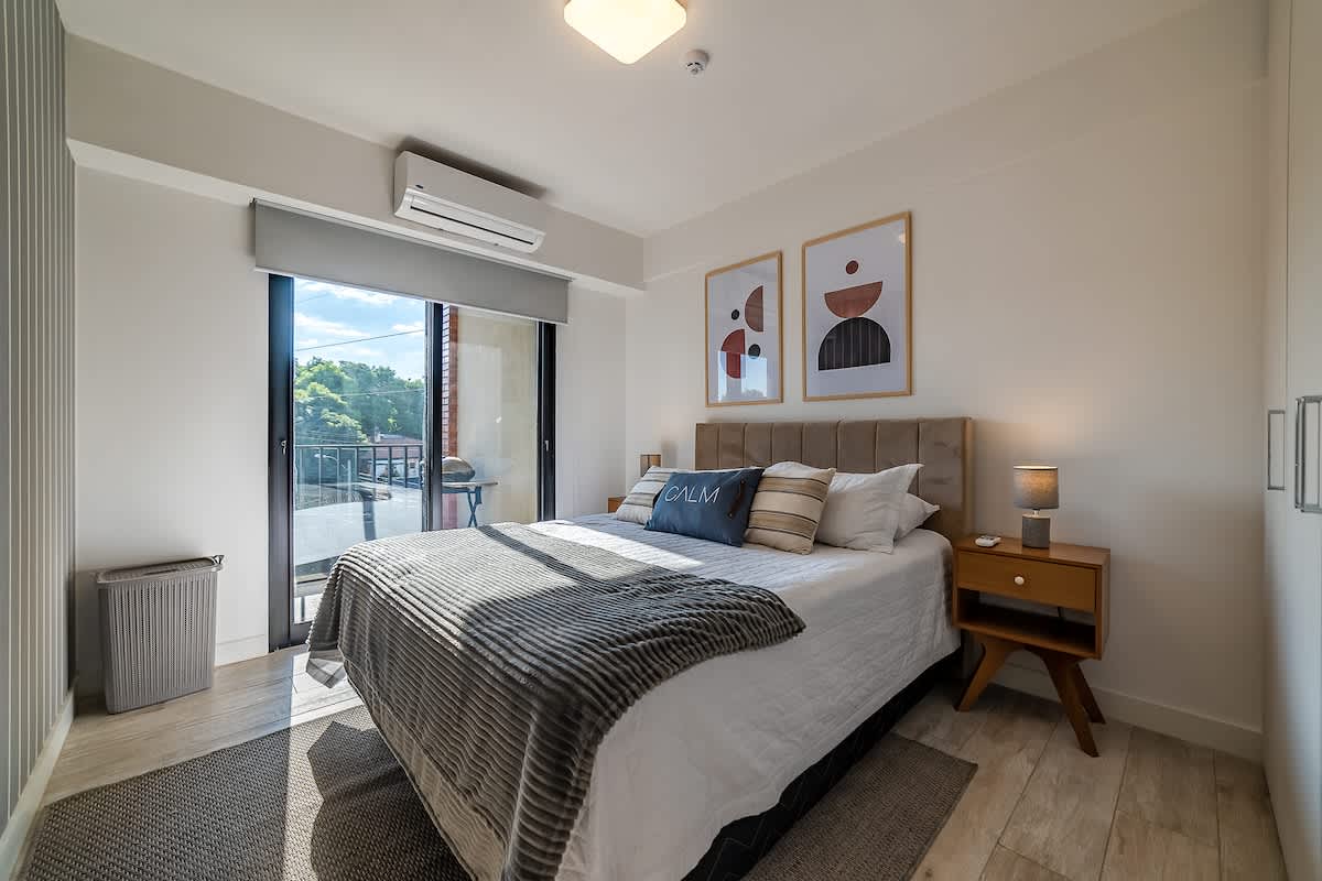 Acogedor y amplio depto con terraza en Fdo de la Mora. Cuenta con dos dormitorios, decoración cálida en tonos neutros, aire acondicionado, ventilador de techo y detalles naturales que transmiten armonía. 🛁 El baño combina encanto vintage con funcionalidad. 🍽️ La cocina es amplia y funcional, ideal para estadías prolongadas. 🍽️ El comedor es cómodo y acogedor, perfecto para compartir comidas o trabajar con vista al exterior. Balcón privado con sillones y parrilla.
