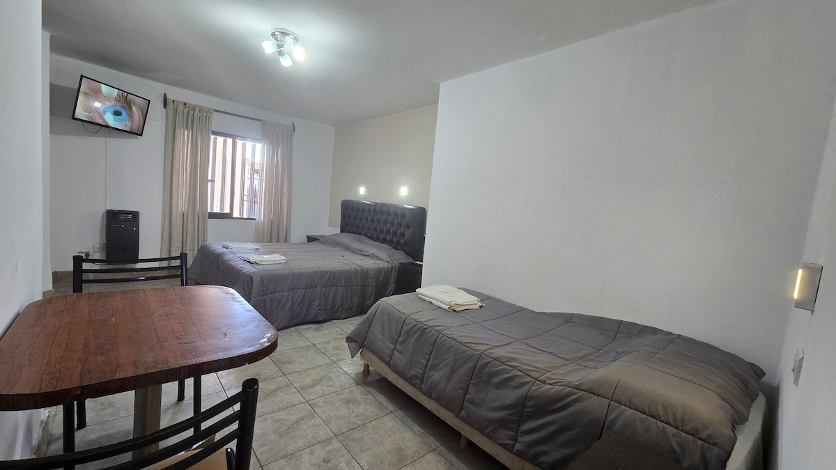 Esta habitación cuenta con recepción y estacionamiento en el mismo domicilio. Mientras que el dpto está cruzando la calle. Ubicados a 4 cuadras de peatonal y 6 cuadras de iglesia y plaza céntrica.