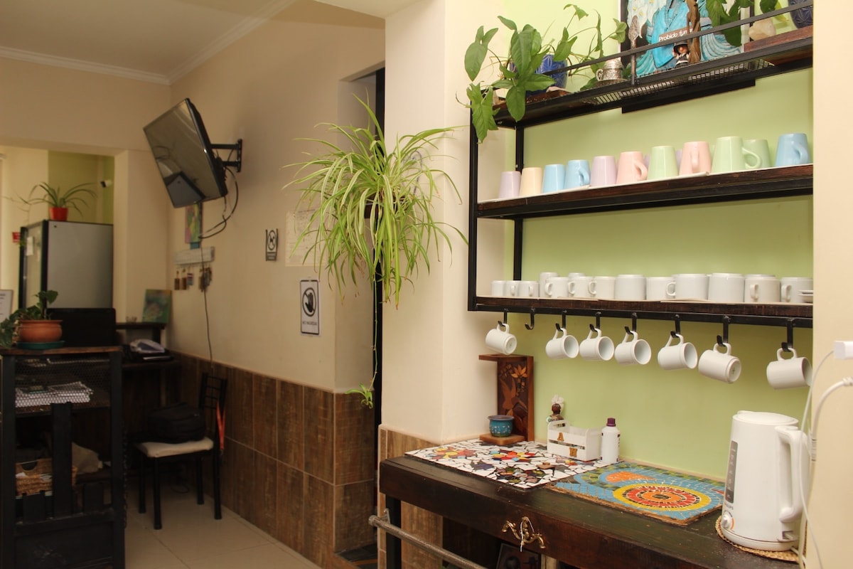 Disfruta del fácil acceso a tiendas y restaurantes populares desde este encantador lugar para hospedarte. Te brindamos un lugar cálido propicio para compartir experiencias con otros viajeros, con habitaciones (privadas o compartidas) para un descanzo reparador, acompañado por un magnífico desayuno buffet..con productos artesanales, y siempre estamos dispuestos a asesorarte con las mejores opciones turísticas del lugar, para que tu estadía sea super placentera