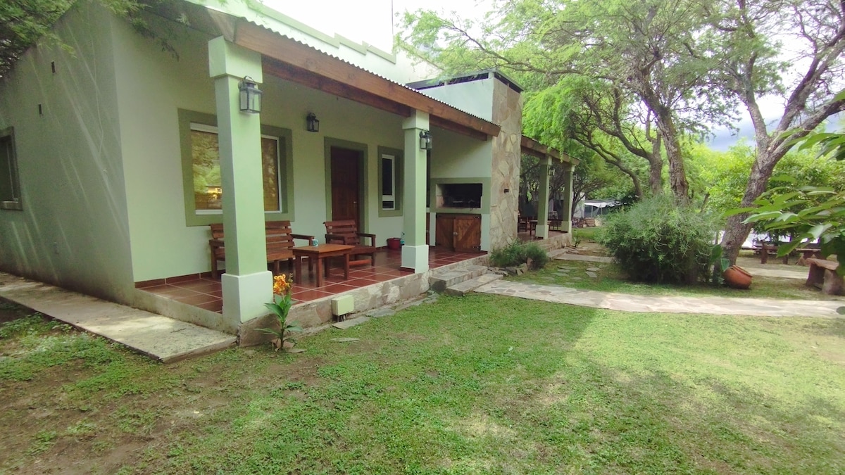 Ideal para descansar y disfrutar de la naturaleza con comodidad para alojar 8 personas, en familia o grupo. Amplio parque rodeado de frondosa arboleda. Pileta de 10 x 5m. Churrasquera. Cama elástica para los niños. Combina tranquilidad, comodidad y proximidad a lugares turísticos en esta hermosa casa estilo campo, para desconectar, reconectar y disfrutar.