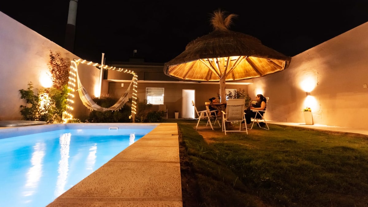 Este elegante alojamiento es ideal para viajes en grupo. un oasis natural, un refugio ideal para el descanso y la tranquilidad. es un destino excelente para amantes de la naturaleza y para aquellos que buscan recargar sus energías. dispone de áreas relax con reposeras cercanas a la piscina. también una cancha de voley o paleta .