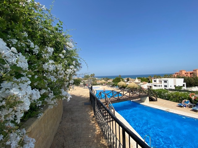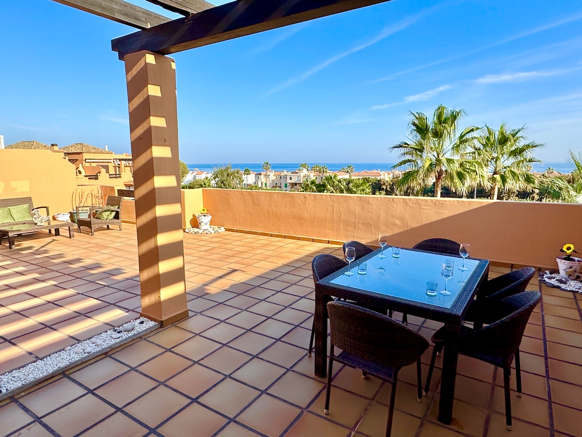 Located on the Costa del Sol, this spacious two-bedroom penthouse offers a large private terrace with breathtaking views of the Mediterranean, Gibraltar, and Africa. Just 10 min from Estepona and 20 from Sotogrande, it features high-speed internet, two bathrooms, private parking, BBQ, and pool access. Fully equipped for comfort in a quiet, gated community, it ensures a peaceful stay and is only a 5-minute walk from golf courses, perfect for relaxation and leisure.