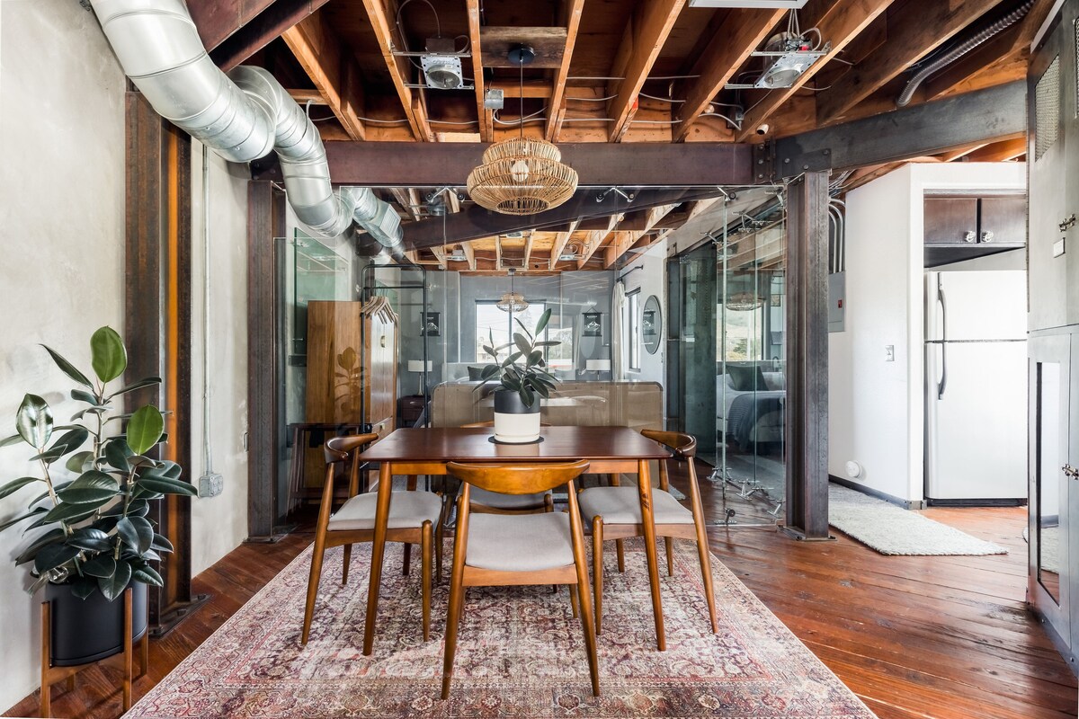 This unique place has a style all it's own. Mid century modern loft located just a few blocks from downtown SLO. 10 min walk and 3 min drive to all the great shops and restaurants SLO has to offer. Thick glass walls in the bedroom allow for an open loft like experience. Many fun details throughout the place create a truly unique vibe. This 800sf loft located upstairs above a salon is private and has designed parking.