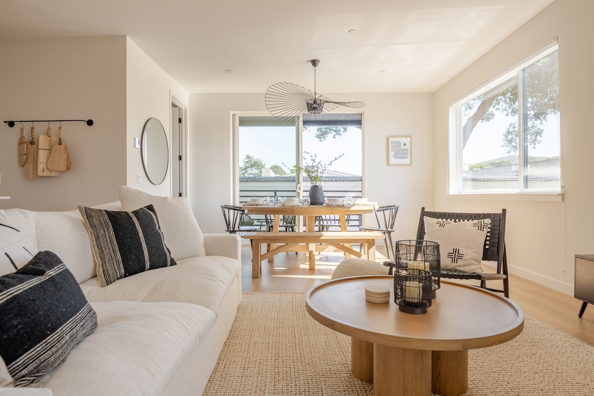 Mid-Century-Design Homestay's private addition offers a tranquil space to explore San Luis Obispo and Central Coast. We thoroughly clean and sanitize plus HEPA air purifier - 24/7. Two separate bedrooms. Fine Art and white walls with large windows that lead out to a private shaded deck w/firepit table for 6. License #113141. It has heat/AC, kitchenette, Pvt. bathroom off of the main bedroom, washer/dryer, Pvt. entrance, free parking, with or without a friendly Lab.