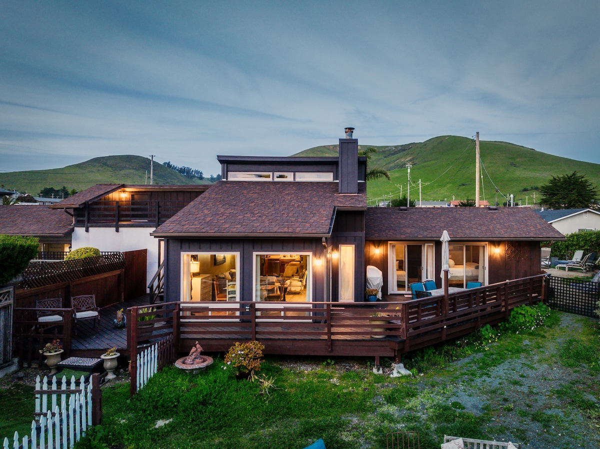*Private Roof Deck with Ocean Views* *One Car Garage with Tesla Wall Charger* *Chef's Kitchen with large open area for entertaining* *Multiple outdoor dining areas* *Hot Tub* *Less than 1/4 mile to beach and Dunes access* *Less than 1 mile to Downtown Pismo Beach* Let us be the place where you gather with family and friends after enjoying a day in the California sun!