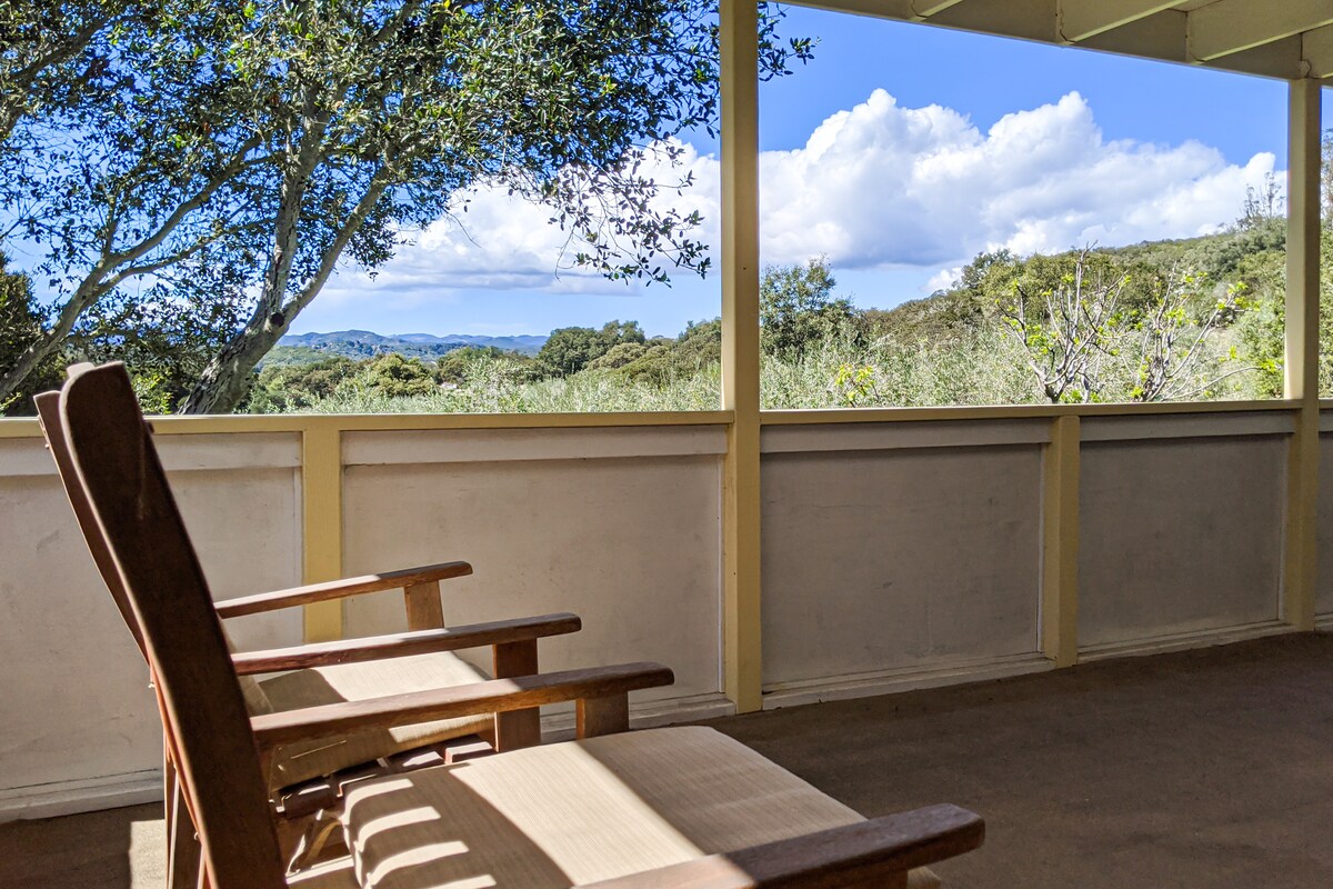 My husband Mike and I are artists. We searched for 10 years to find the perfect spot for our retirement years. We found 7 1/2 acres here, on the Central Coast, with spectacular views of verdant trees covering rolling hills that reach all the way to the distant mountains south and east of Arroyo Grande Village. Come and stay in our Guesthouse, relax, explore the property, walk the quiet country lanes. For a rural setting, we are surprisingly close to all amenities, beaches, and wineries.