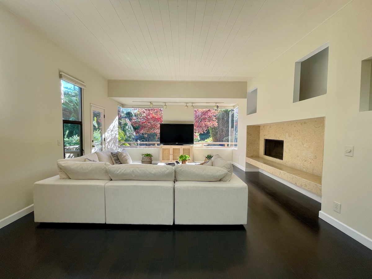 Serenity on Serrano is a Frank Lloyd Wright-inspired peaceful haven set in one of SLO's most prestigious neighborhoods right on the edge of a creek. This midcentury modern home is just steps to hiking, the downtown, shopping, and restaurants. Be prepared for nature as it's common to be greeted by wild turkeys, birds, and more. Enjoy the tranquility of minimalist design. Note: There is $25 per night for each extra guest over 4. Permit # H-0408-2023