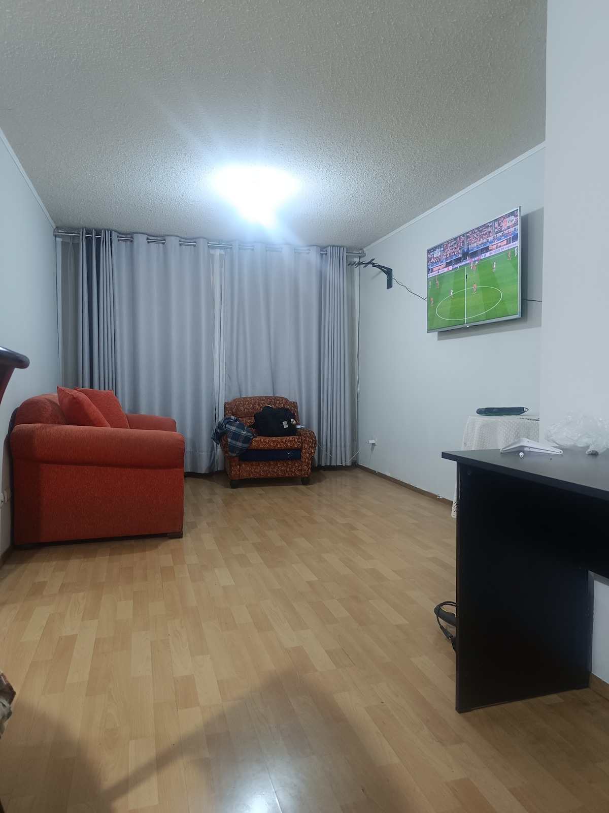 El Mini/departamento es confortable para 1 huésped, cama dos plazas/ matrimonial , amplio closet para estancias largas, un escritorio para trabajar y un televisor. Un Kitchenette con una cocina eléctrica de una hornilla, una mesa abatible con 2 sillas, hervidor eléctrico, un frio- bar, licuadora personal, microondas, un mini grill y menaje. Un baño amplio con ducha eléctrica. El lugar es seguro y tranquilo . La entrada es independiente y se ubica en el 2do. piso.