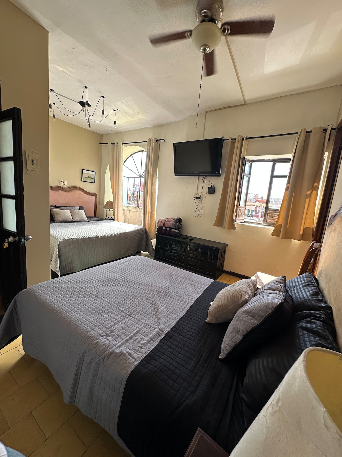 Casa situada en una de las avenidas principales del Centro Histórico, a unos pasos del Jardín de San Sebastián y todos los lugares turísticos del centro. Acogedora habitación cuenta con una cama King Size, baño privado, Smart tv, Alexa, refrigerador, microondas, cafetera. La habitación está en el tercer piso dentro de la casa, se puede acceder a la terraza.