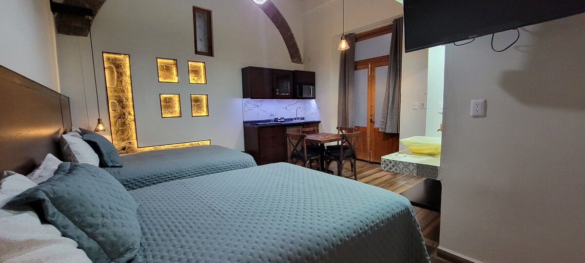 Genesis Suites se encuentra a menos de 2.5 km del Centro Historico ; ofrece alojamiento con jardín, terraza y cocina compartida. El hotel ofrece WiFi y aparcamiento privado gratuitos. Los cuartos están equipados para estar a una temperatura de 24 grados, zona de cocineta, TV , baño privado y artículos de aseo gratuitos. Los alojamientos tienen zona de comedor y patio compartido. Estamos a 8 km del estadio de Foot . El aeropuerto internacional Ponciano Arriaga es el más cercano y queda a 15 km.
