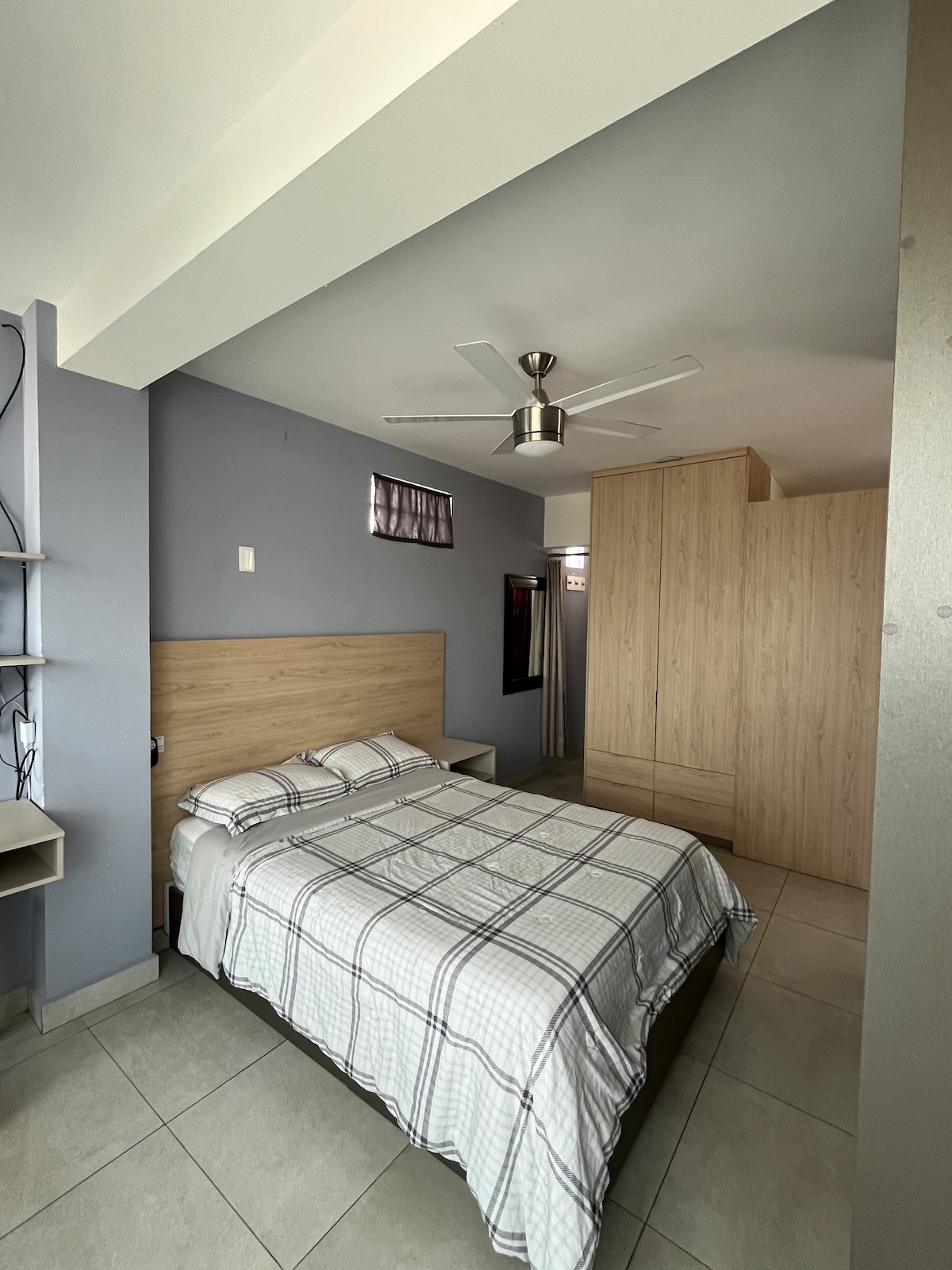 Mini departamento con cama matrimonial con baño completo privado, y una pequeña área para trabajar. También tenemos un area común para fumar o beber compartida con otros huéspedes y pasar un buen rato, cuenta con entrada independiente, Contamos con estacionamiento sobre la calle, la colonia es muy tranquila y segura, Solo de favor NO estacionarse en la áreas marcadas en color rojo en las fotos, todo lo demás está libre para estacionamientos.