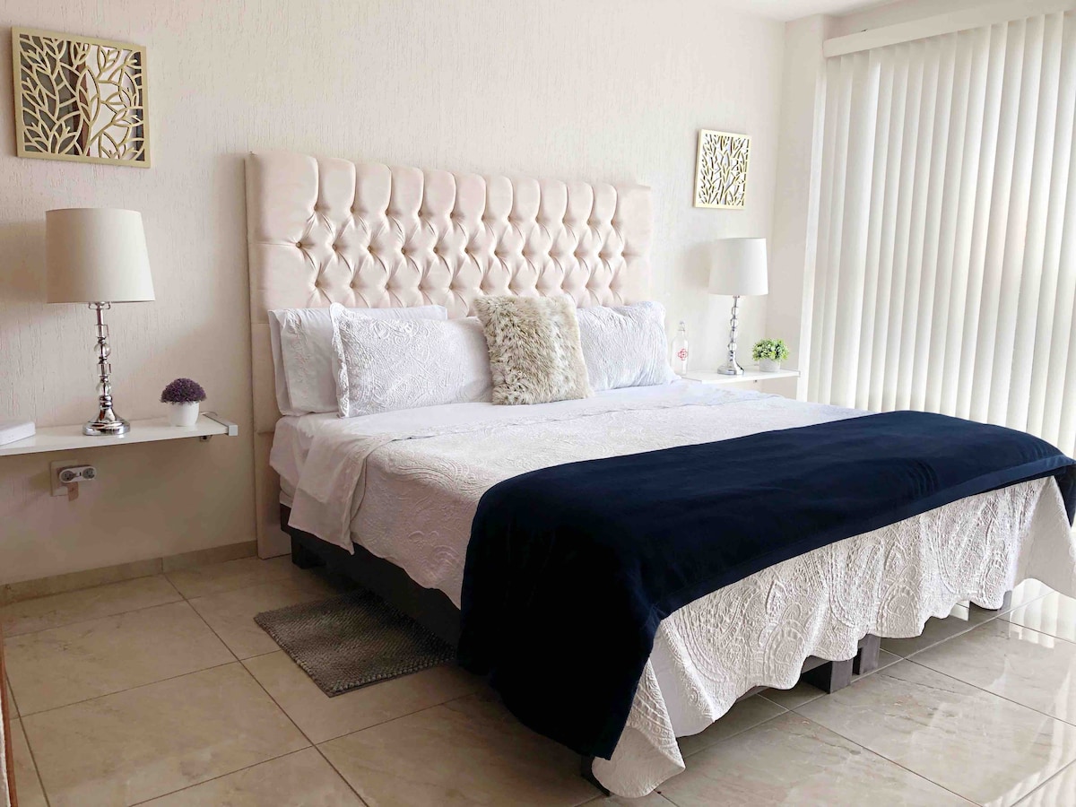 Descubre un alojamiento con vista increíble a la ciudad. Ubicado cerca de plazas como The Park y Plaza San Luis, a minutos de la zona universitaria y a 10 minutos a pie del Parque Tangamanga. La Fundación Mendoza está a solo 5 minutos en coche. Acceso fácil y seguro con caja de llaves. Cuidamos cada detalle para que tu estancia sea extraordinaria. ✅SI EMITIMOS FACTURA!!