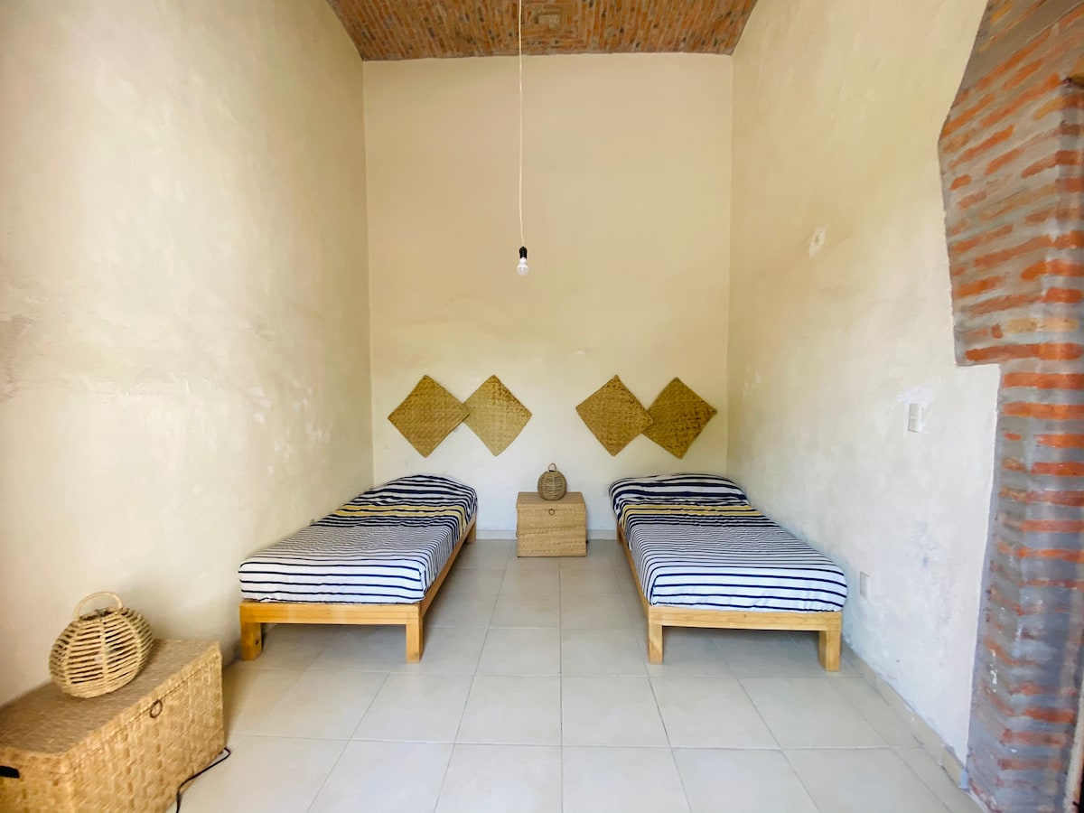 Céntrica habitación privada dentro del hostal con 4 literas individuales para 8 personas con wifi, clima, baño propio, toalla, limpieza diaria, área común, patio con árboles frutales, incluye desayuno continental. Desde aquí desplázate a parajes turísticos en la Huasteca Potosina a conocer las hermosas cascada de Tamul, Micos, Tamasopo, el sótano de las golondrinas, grutas. Ideal para familia o grupos de amigos que gusten compartir espacios y vivencias.