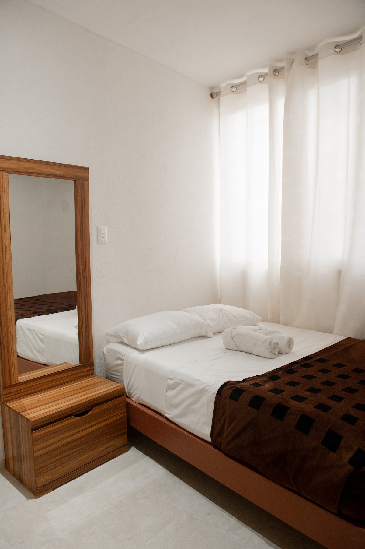 Mini departamento con cama matrimonial con baño completo privado, y una pequeña área para trabajar. También tenemos un area común para fumar o beber compartida con otros huéspedes y pasar un buen rato, cuenta con entrada independiente, Contamos con estacionamiento sobre la calle, la colonia es muy tranquila y segura, Solo de favor NO estacionarse en la áreas marcadas en color rojo en las fotos, todo lo demás está libre para estacionamientos.