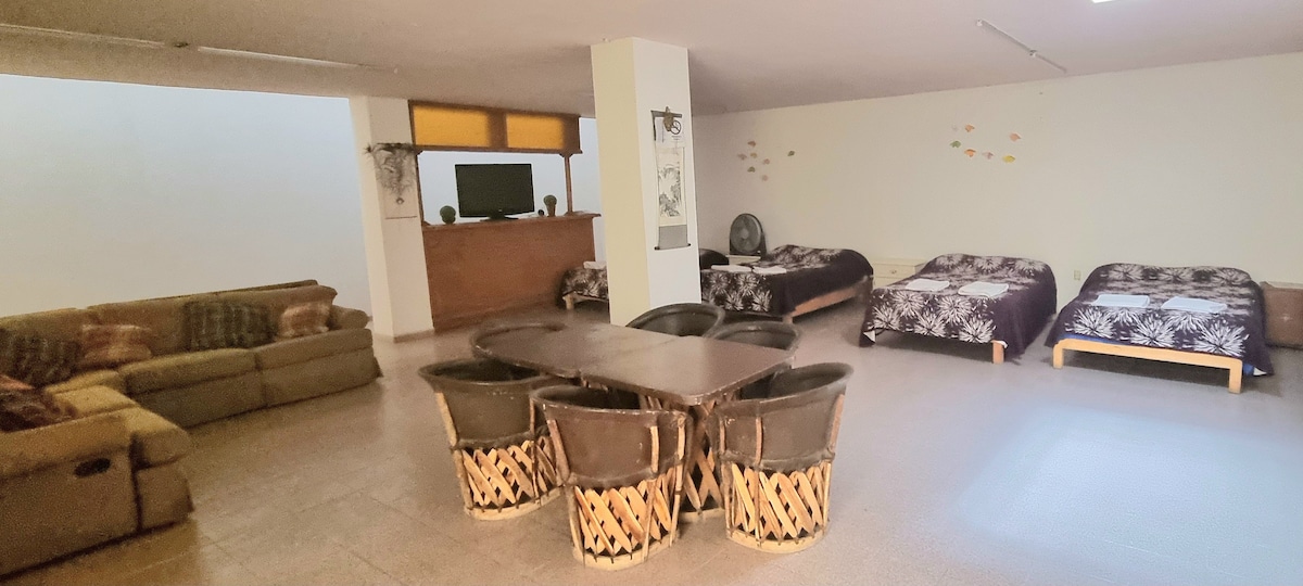 Loft Adjunto con -4 camas matrimoniales, -1 baño completo -Sala y comedor, muy cómodo, -Cocina compartida, a disposición de los huéspedes -1 espacio de cochera Ubicada al sur de la ciudad de Aguascalientes, 12 min en coche a la feria de san marcos, 15 min al centro, cocina y cochera, compartidos, un lugar excelente para descansar y/o hospedarse con la familia o amigos, en un fraccionamiento muy tranquilo, y con muchas comodidades, restaurantes, tiendas de conveniencia, en los alrededores.