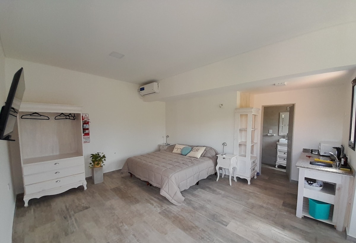 Esta habitación cuenta con recepción y estacionamiento en el mismo domicilio. Mientras que el dpto está cruzando la calle. Ubicados a 4 cuadras de peatonal y 6 cuadras de iglesia y plaza céntrica.