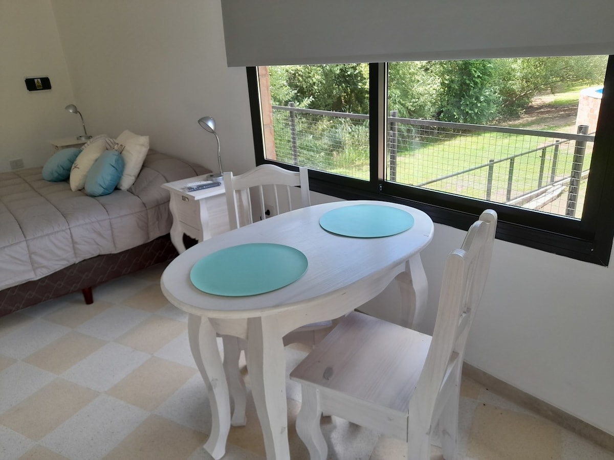 Posada del Manzano es un lugar tan único y encantador que vas a querer volver apenas entres. Es un Hotel nuevo e impecable. Mucho arte por todos lados. Se respira paz y tranquilidad. La posada esta ubicada entre el pueblo de Merlo y Carpinteria, de muy facil acceso y con mucho verde a su alrededor. Es el lugar ideal para tus vacaciones.