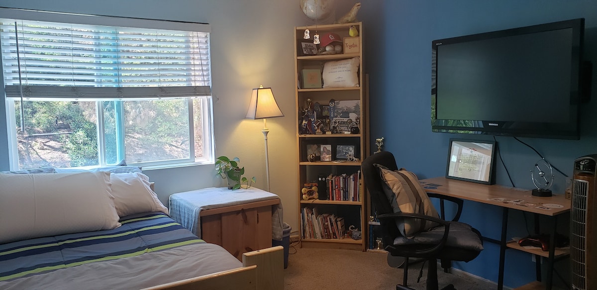 Newly updated peaceful and convenient guesthome in Scripps Ranch. With a private dining room, a fully equipped private kitchen, two cozy bedrooms with desks, and a private bathroom. With central AC and 500Mbp WIFI. 1 minute's driving to a plaza with a supermarket, bank, Starbucks, and restaurants. 5 minutes’ drive to Lake Miramar. Perfect location for exploring UCSD, LaJolla Shores, San Diego Zoo, Sea World, Legoland, Balboa Park, and many other attractions in San Diego.