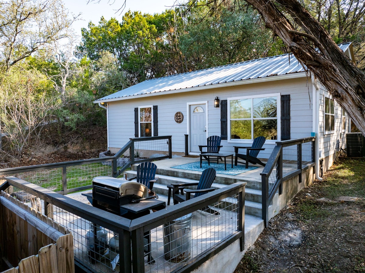 Enjoy a peaceful stay in our cozy, fully furnished bungalow while taking in the picturesque scenery from your own private jacuzzi and balcony. The perfect getaway for nature lovers and those seeking a peaceful escape. Centrally located near Lake Dunlap and minutes away from both the Comal and Guadalupe rivers, downtown New Braunfels and the Historic Gruene District. Book now and experience the beauty and charm of New Braunfels like never before!