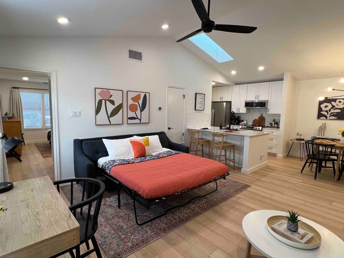 Come. Stay. Play. Are you wanting a central location, a clean modern aesthetic, and resort feel all to your own? This is your spot! Take all of the guess work out with this stunning contemporary studio in the heart of ATX- A luxury quality stay where every last detail is carefully provided for your comfort, enjoyment, and convenience. The perfect place to retreat. We are endlessly in love with this city and can’t wait to share it’s magic with you. Please reach out if you have any questions!