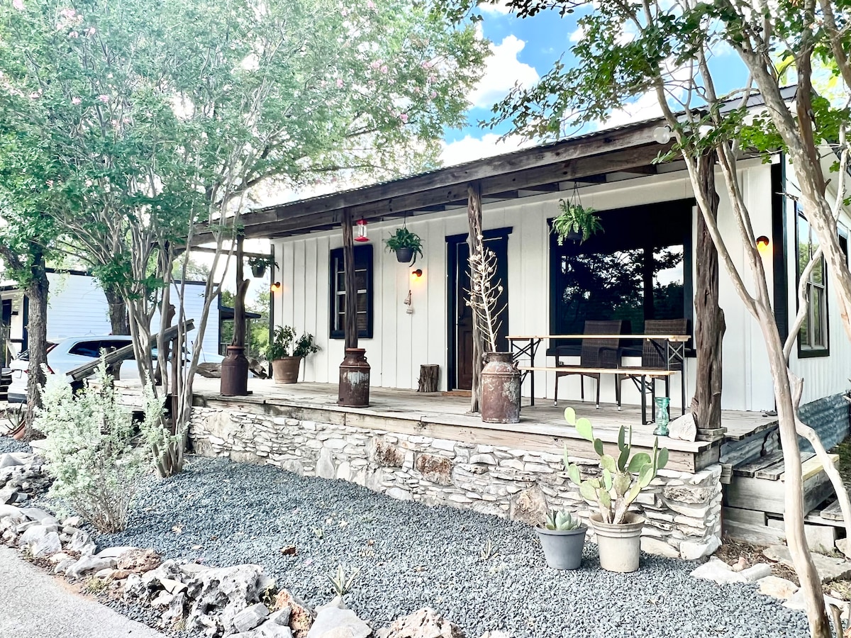Plan to relax and rejuvenate while staying in Northstar Modern Cabin, our deluxe lodging option. Imagine sipping freshly brewed coffee on the front porch, admiring the incredible, vast, Hill Country view. While some folks stay here to get away from it all, it’s only a five minute drive along the Blanco River into town for shops, restaurants, and activities. When you return for the evening, kick back and savor the sunset and stargazing.