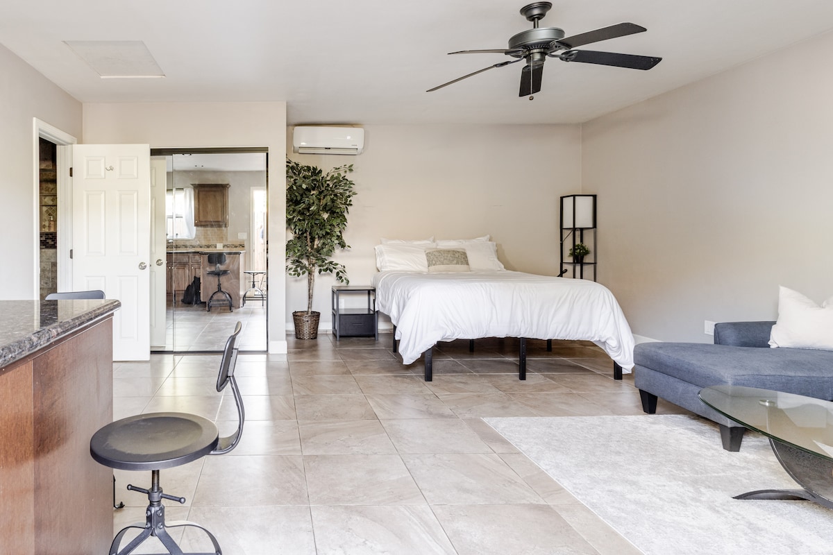 Relax in our 470 sq ft studio space in the prime location of Old Town Monrovia with private entrance! This quiet, family friendly neighborhood is filled with nature and historical architecture. Conveniently located near major freeways, shopping centers, and Old Town Monrovia within a 1 mile radius. Aside from shopping/eating, bask in nature and treat yourself to one of the many hiking trails just minutes away! This is the perfect getaway for couples.