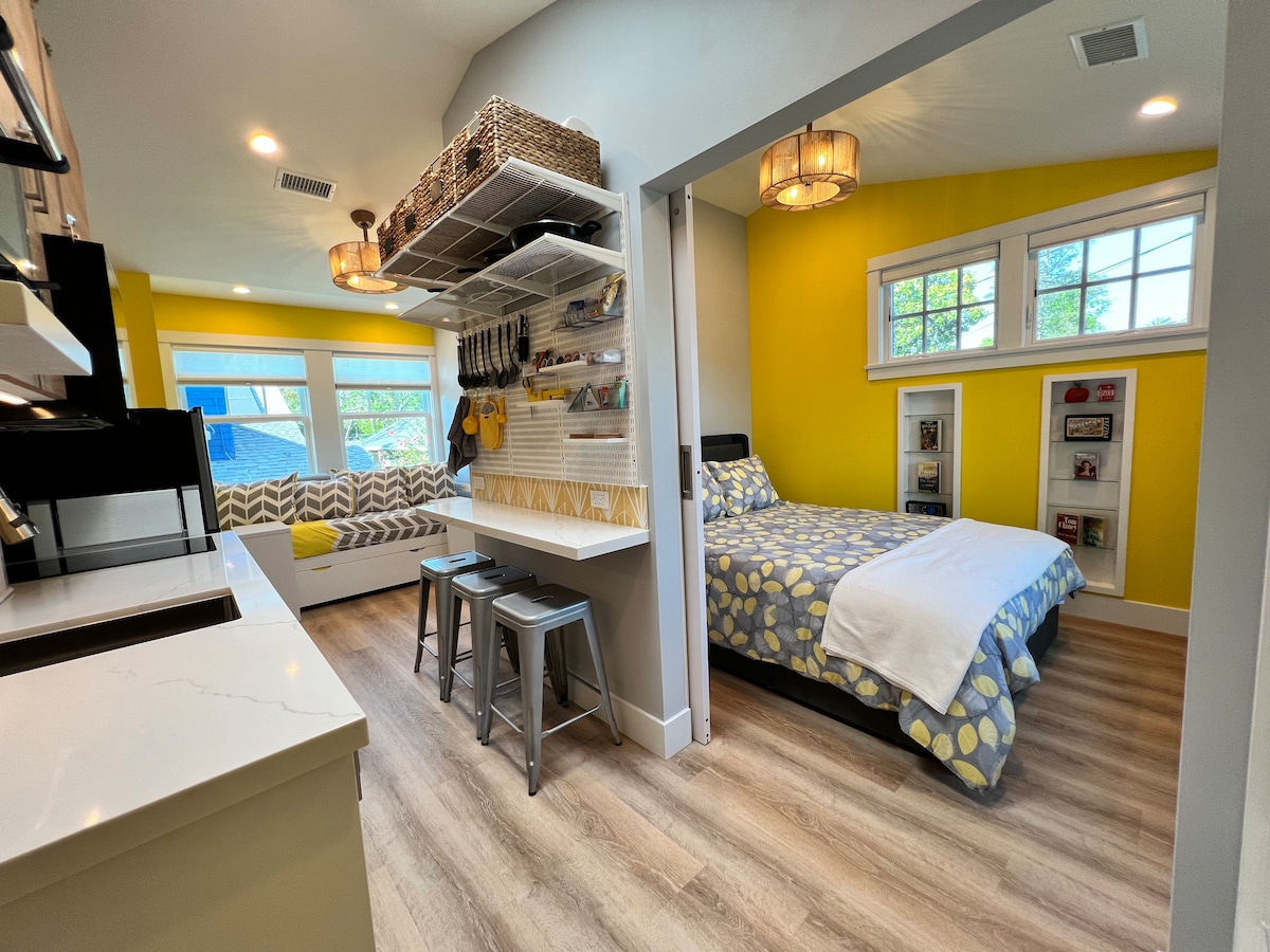 Welcome to our brand new private studio. This tiny studio is perfect for a solo traveler. It has a private entry and is located behind a 1940 historical home in a quiet safe neighborhood. It has a sparkling clean bathroom and a kitchenette(no stove). The kitchenette has a mini fridge, microwave, toaster oven, electric kettle, and single brew coffee dispenser. The space is for a single guest and furnished with a high quality twin size bed , a full size table, and a full size chest drawers.