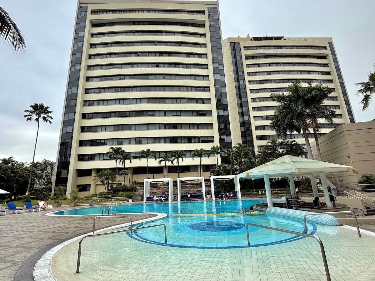 En la nueva Torre Milleniun, recién estrenada. Nuestra suite se encuentra en el exclusivo sector empresarial del World Trade Center de Guayaquil, en el piso 10, con una vista única y relajante hacia el parque lineal, un bosque que es pulmón de la ciudad. Podrás salir a caminar cada día por un parque seguro, justo al cruzar la calle. Además, para compras cercanas está el San Marino shopping. Diviértete con toda la familia con nosotros. Si es un grupo, tenemos mas opciones en el edificio.