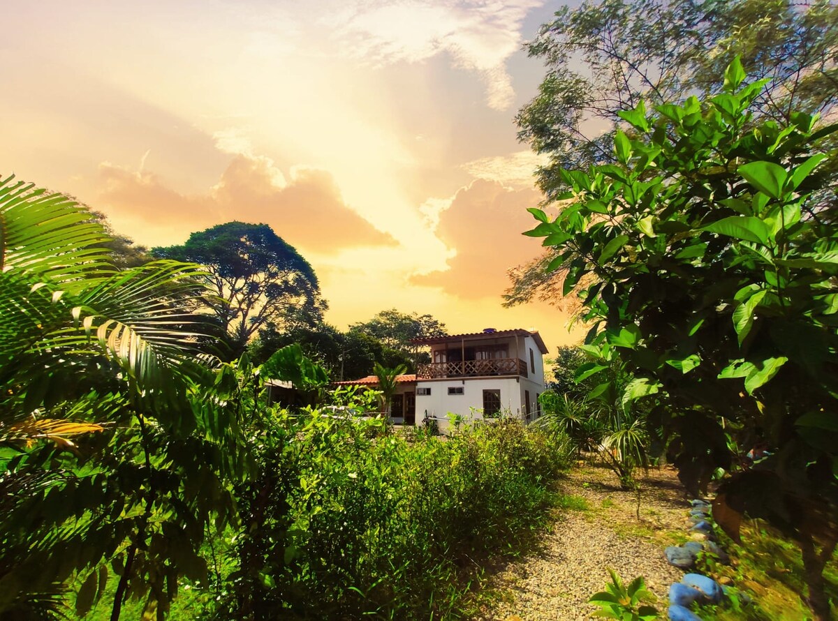 Escape to a natural paradise! Spacious house for 12 guests surrounded by monkeys, 80+ bird species, and waterfalls just 500m away. Enjoy eco-trails, rivers, and fishing lakes within the complex. Features 3 bathrooms, 2 lofts, a fully equipped kitchen, laundry, parking, and DirectTV. Perfect for groups seeking adventure and total disconnection. Wake up amidst biodiversity with all the comforts of home. Book now and reconnect with nature!