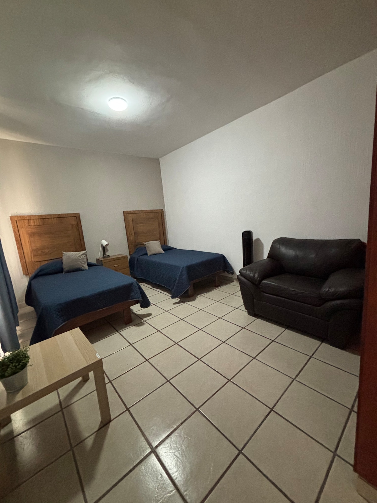 Hospédate por negocios o de placer en nuestro recién remodelado departamento. Ubicado en una de las principales avenidas del municipio y a unas cuantas cuadras del centro histórico. El departamento se encuentra en un segundo piso, cuenta con dos cuartos para dos personas cada uno, baño compartido y un área común de sala-comedor-cocina, con un sofá cama para una persona extra. Ideal para estancias cortas o para disfrutar de las fiestas del municipio.
