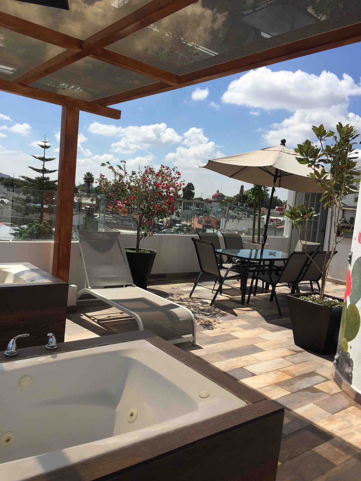 Vanguardista, céntrico y acogedor, son sólo algunas de sus características, cuenta con cómodas instalaciones que te permitirán disfrutar de una excelente estadía. Excelentes acabados y bien equipados. Cuenta con wifi, Netflix, roof garden con jacuzzi, camastro, comedor al aire libre y lavandería (previa reservacion)